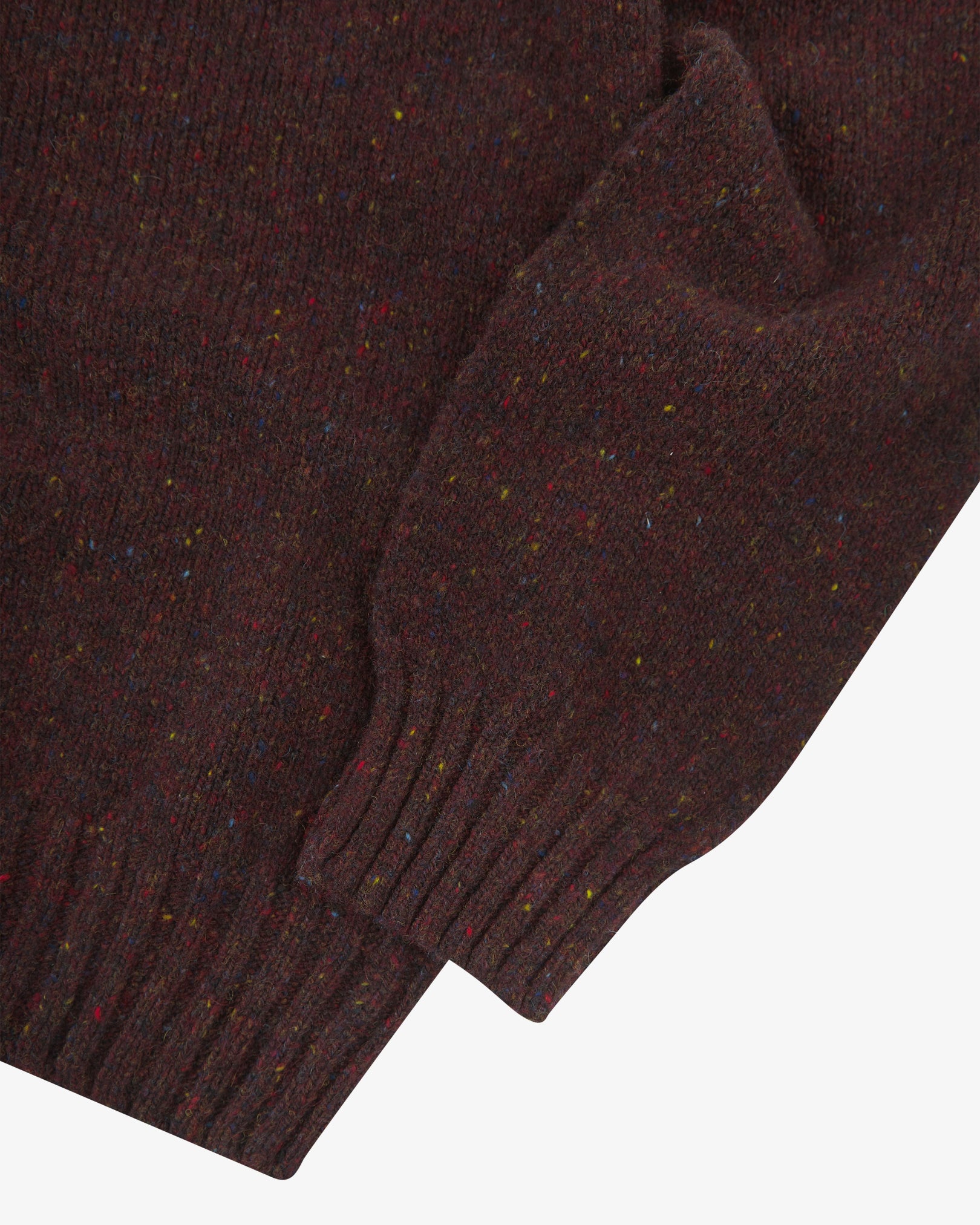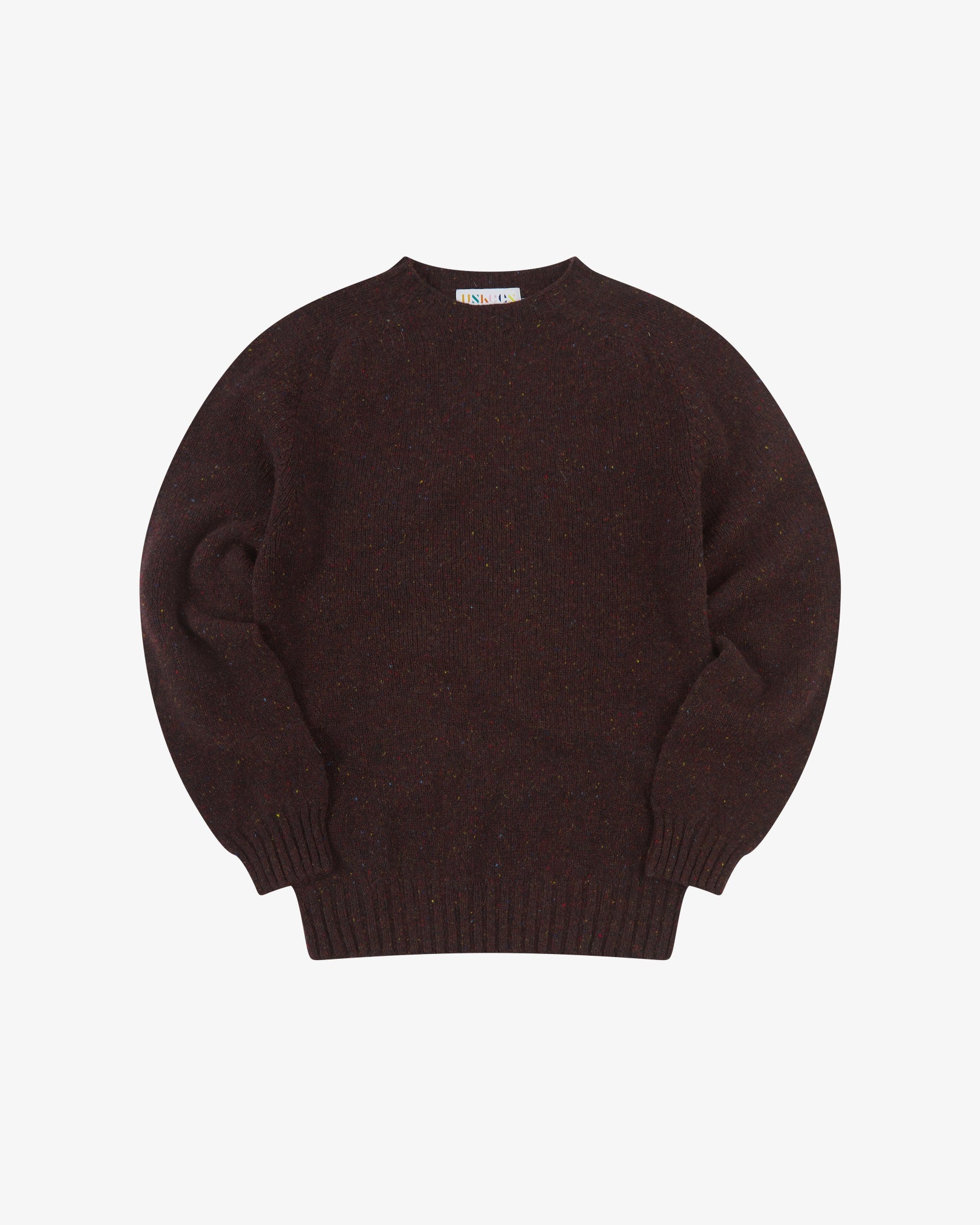 A drop shoulder crewneck in speckled new wool. The 7019 is a peppery textured jumper made in Scotland and built to brave the blustery harbours and fieldscapes of its Channel Islands namesake. A relaxed, joyful addition for any warm, rugged style.